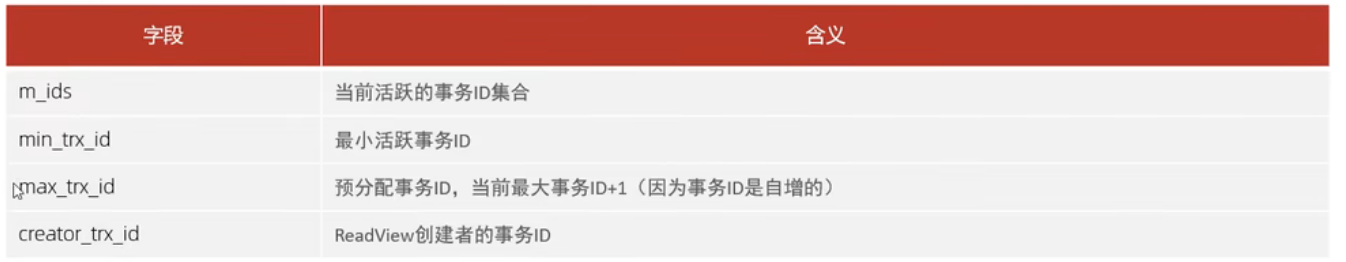 ReadView中包含了四个核心字段: