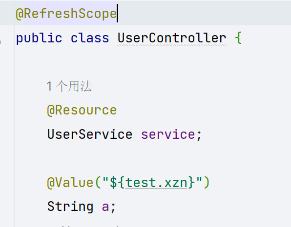 但此时你无法读取到配置的改变,如果想实时刷新配置内容并使用需要添加注解实现热更新