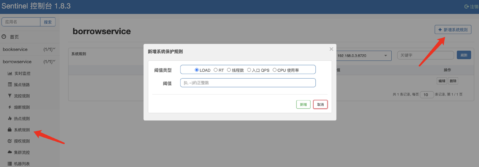- 并发线程数:当单台机器上所有入口流量的并发线程数达到阈值即触发系统保护。